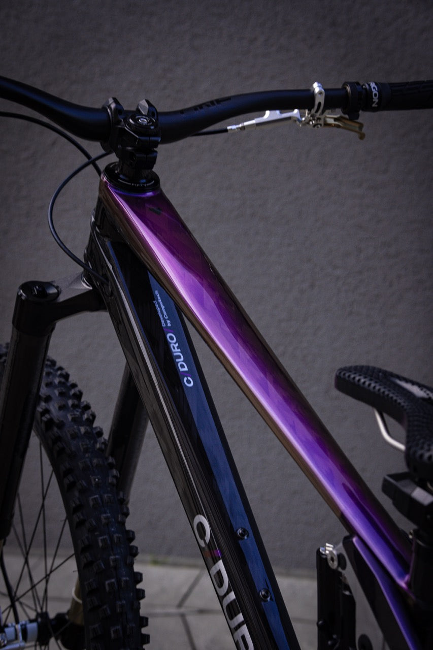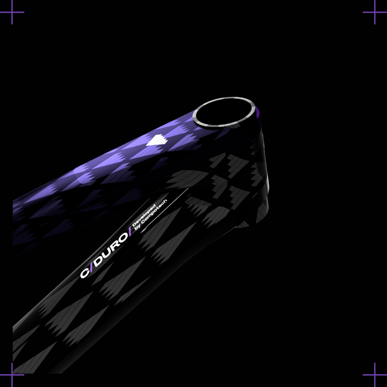 All C/DURO frames are made in an automated process from advanced carbon fibres UMS40 and M40J with very high stiffness (~400GPa) and strength (~4500MPa), resulting in a very stiff, strong and lightweight frame. The stiffness gives our bikes distinctively precise and agile ride feel without harshness thanks to vibration damping capabilities of our tubes. A very high stiffness to weight ratio puts the natural frequency of C/DURO frames higher to avoid resonance and loss of grip.